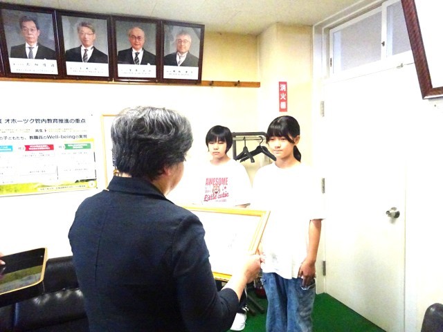 人権の花運動で頂きました花を大切に育てたという功績が認められ、表彰していただきました。子ども達は毎日水やりを頑張っており、10月になった今でも花を咲かせています。人権委員の方から花を大切にするように、これからも人を大切にして欲しいという話をしてもらいました。花を育てることが優しさの気持ちにつながっています。