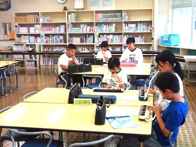 学芸会に向けてこれまで楽器ごとのパート練習を行ってきましたが、今週から、全体で合わせて演奏を始めました。ヒット曲の「Bling-Bang-bang-Born」を演奏しますが、パート練習の成果が出て、みんなで合わせて曲を演奏することができました。さらに練習に取り組み、より息のあった演奏を目指していきます。