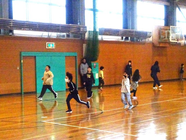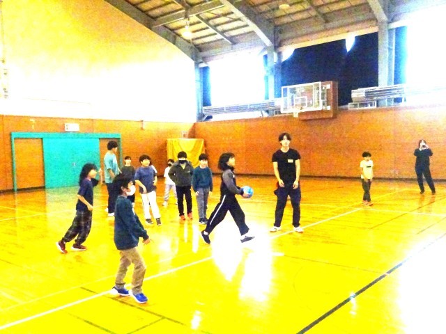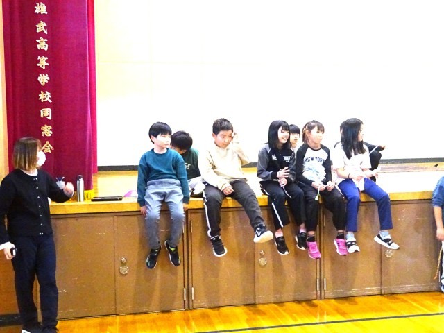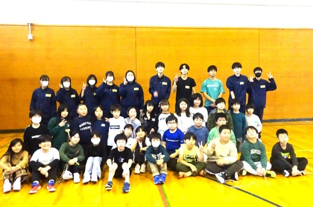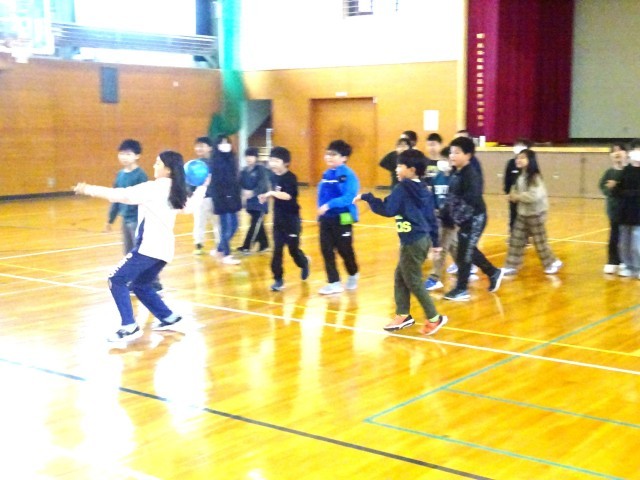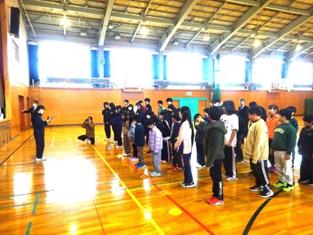 3・4年生は雄武高校1年生の生徒の皆さんに高校に招待していただき、一緒にドッジボールやしっぽとりゲームをして交流しました。雄武小学校の3年生も来ていて一緒に楽しい時間をすごしました。