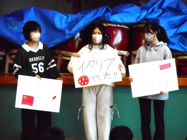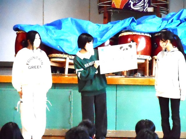 今日の全校朝会では、児童会三役から、挨拶に興味をもってもらうためのクイズが行われました。いろいろな国の挨拶がクイズに出され、解答する児童もとても興味深そうでした。今日の活動が、日頃の挨拶の良さにつながっていけばよいなと思います。