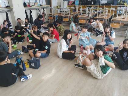 でも少しでも「遠足気分」を味わえるよう、各学年では写真のような様子でお弁当をいただきました。