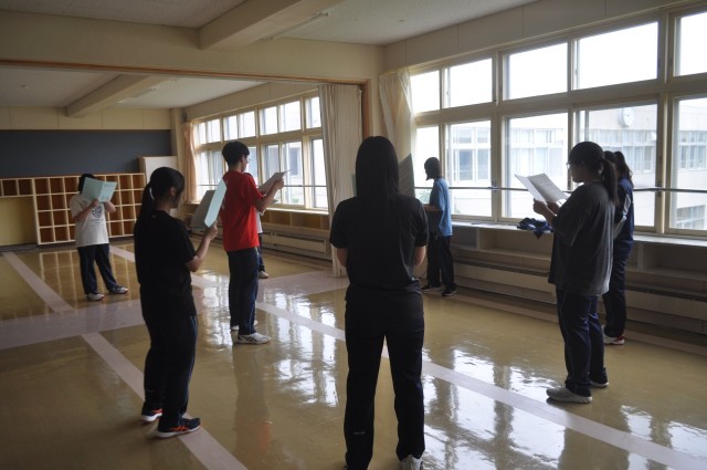 中学3年生の音楽の授業では、雄中祭で披露する合唱曲「あなたへ~旅立ちに寄せるメッセージ」に向けて、各パートに分かれての練習が始まりました。