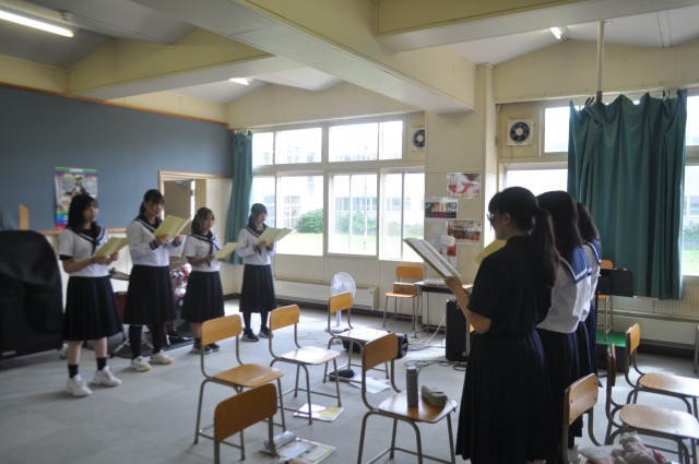 この日はパートごとに分かれての練習。女声パート、男声パートそれぞれ教室でパートを確認しながら歌声を磨きました。