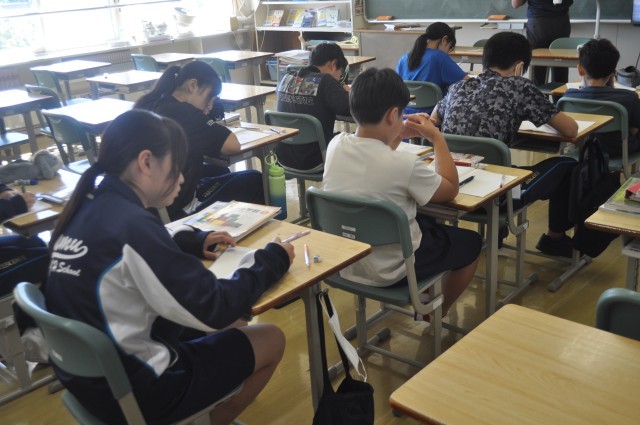 黒板には文章題の解き方の流れや考え方が整理され、生徒たちは真剣にノートに書き込みながら取り組んでいました。文章を正しく読み取り、式に表すことができるように、解くための手順をひとつずつ確認。授業中は集中した空気が流れ、解く力を少しずつ身につけていく様子が見られました。