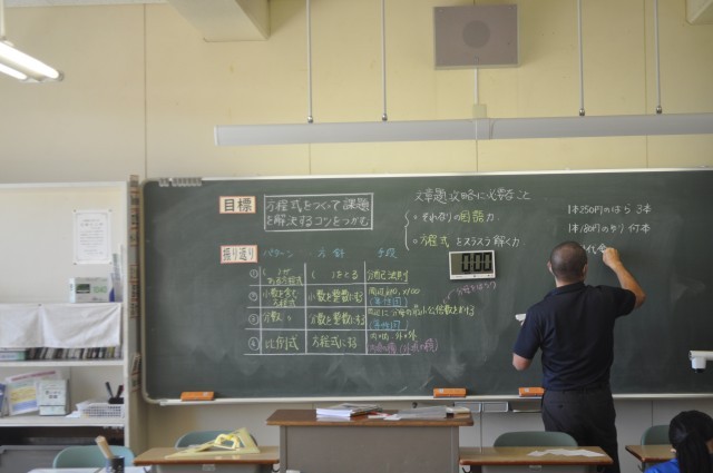 中学1年生の数学の授業では、「方程式をつくって課題を解決するコツをつかむ」ことを目標に学習を進めました。