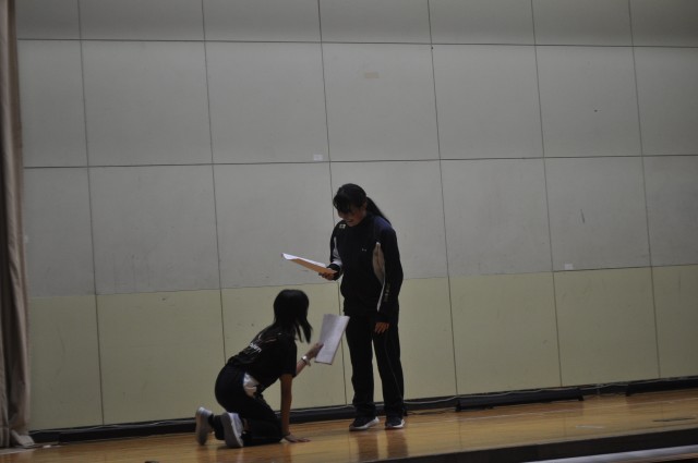 舞台練習では、役者をはじめ、照明係、音響係、大道具係といった担当ごとに分かれて動きました。