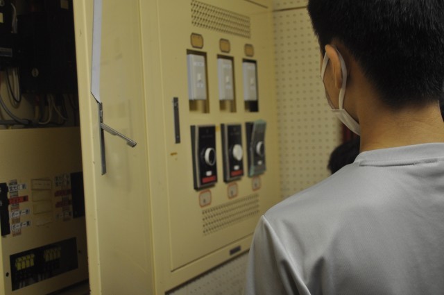 照明のコントロール室では、スイッチやダイヤルの操作方法を真剣に確認し、舞台上の仲間と連携を取りながら光のタイミングを合わせます。照明の向きや明るさによって、舞台の雰囲気が大きく変わることを実感し、班員たちは細かな調整を重ねていました。