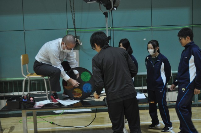 舞台発表に向けて、照明班の生徒たちが本番を見据えた台本見ながら練習行っています。体育館では、スポットライトの角度や光の色の切り替えなど、一つひとつの作業を確認しながら進めました。