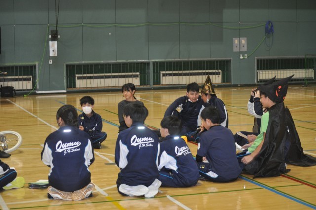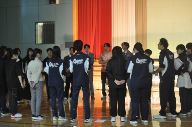 体育館では、各学年が円陣を組みながら合唱、舞台発表の最終仕上げに取り組んでいます。