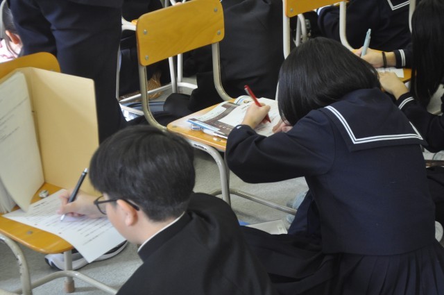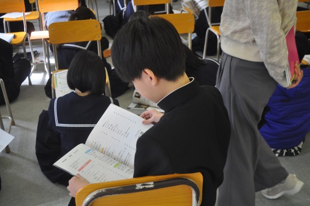 生徒たちは、歌の内容や登場人物に注目しながら、真剣に学習していました。
