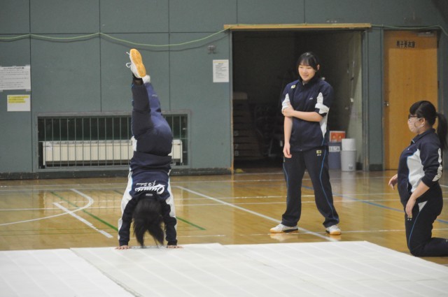 この日は、グループで演技構成を考えたり、仲間と協力しながら自分の目標に向けて練習していました。