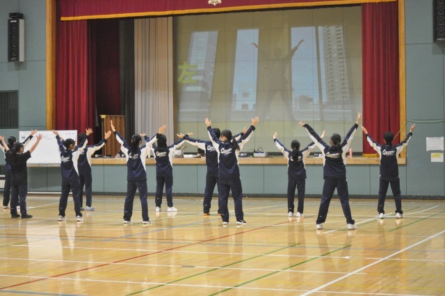 中学2年生の体育の授業では、音楽に合わせてリズムダンスを行いました。