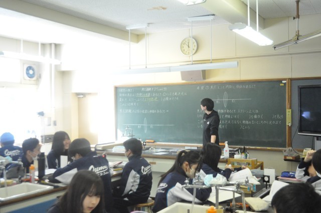 中学1年生の理科の授業では、凸レンズのはたらきについて実験を通して学びました。