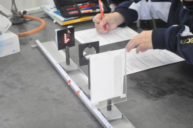 生徒たちは、物体の位置を動かしながら、スクリーンにどのような像が映るかを実際に確かめました。