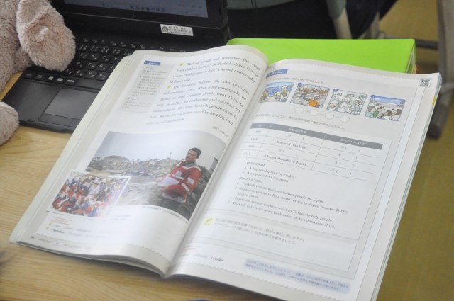 中学2年生の英語の授業では、日本とトルコの交流の歴史を題材に学習しました。