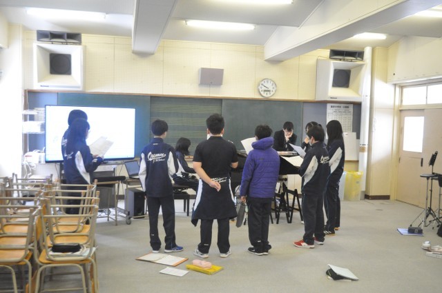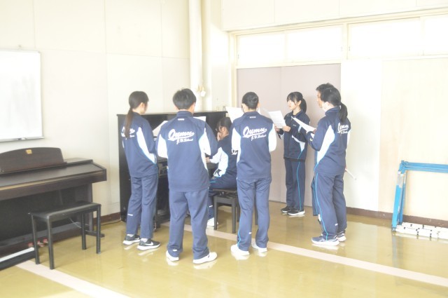 中学1年生の音楽の授業では、卒業式に向けて合唱練習を行っています。