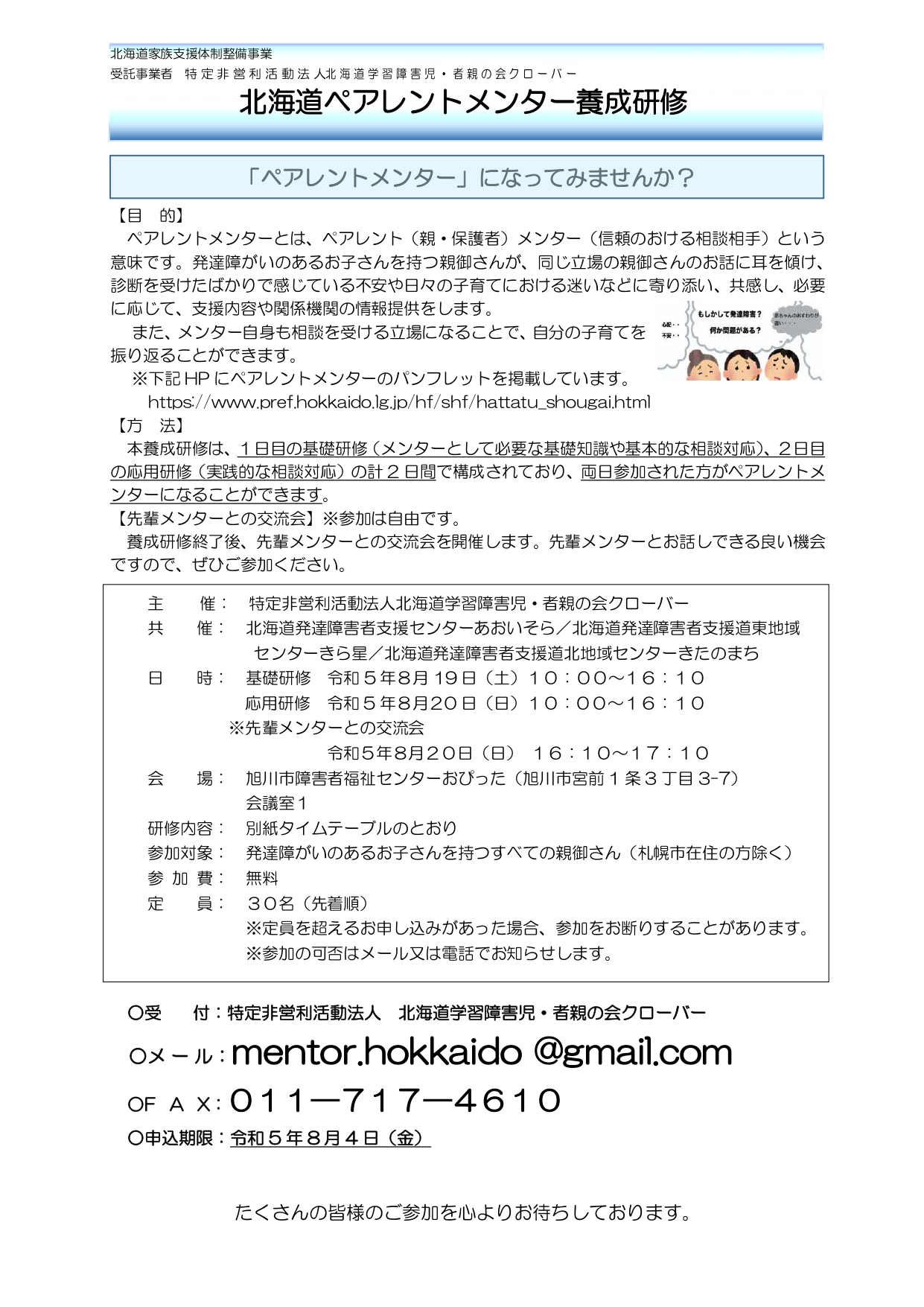 【保護者向け】北海道ペアレントメンター養成研修