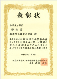 🏆 雄武中学校吹奏楽部、全国大会で優秀賞受賞!